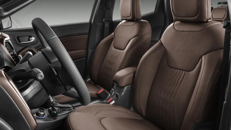 El interior se destaca el cuero marrón en contrapuertas, apoyabrazos, freno de mano volante y asientos que suman el logotipo "Ranch" en sus respaldos delanteros. El emblema de la versión también está presente en las alfombras, consola central y las puertas delanteras. El marrón también se aplica al marco del equipo multimedia, las salidas de aire y las manijas de las puertas.