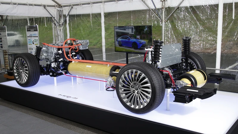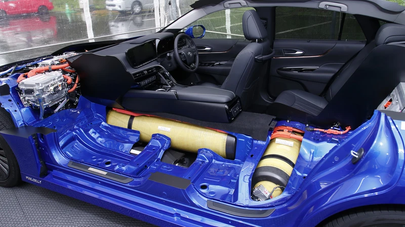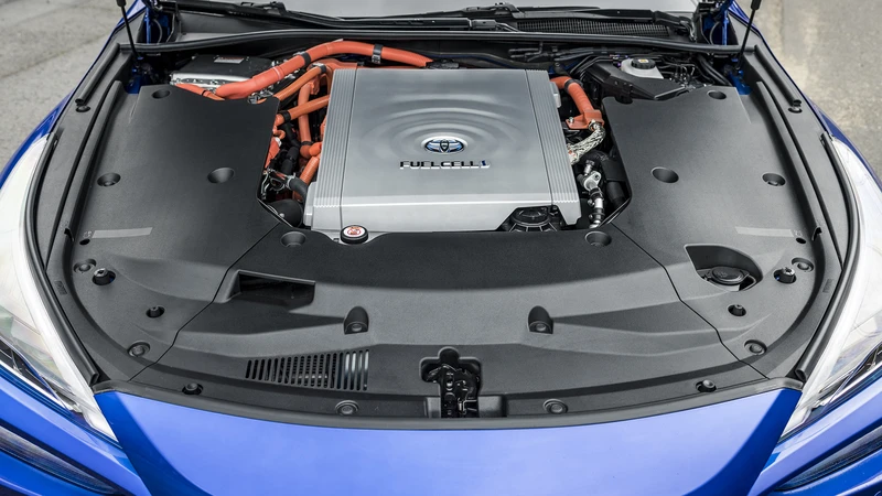 La plataforma TNGA es de tracción trasera y mejora notablemente la rigidez del auto. Además, fue concebida para alojar distintos sistemas de propulsión, incluyendo éste FCEV.