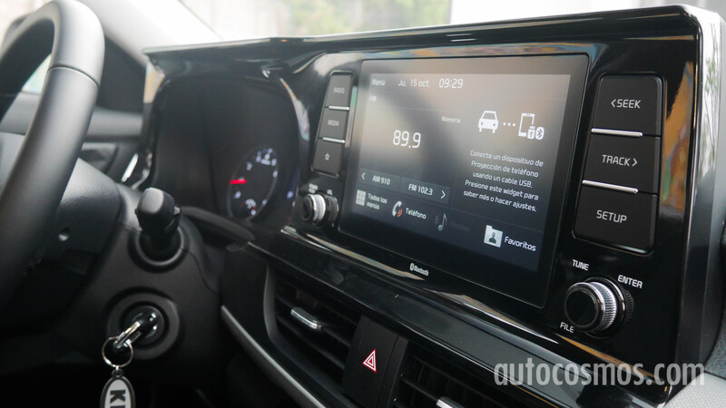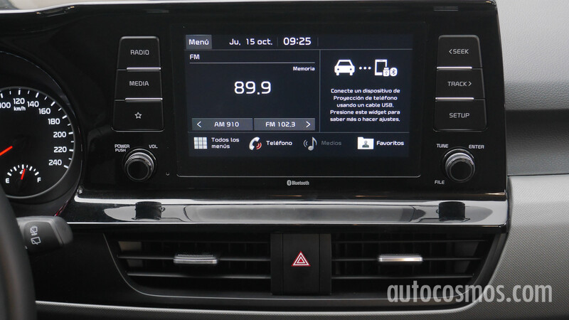 El equipo multimedia es un viejo conocido de KIA y Hyundai. No tiene GPS propio, sí compatibilidad con teléfonos y suma dos perillas más botones muy grandes para facilitar su operación.
