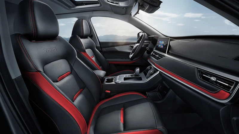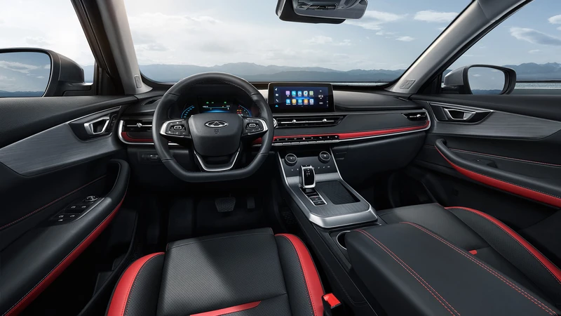 Otra imagen develada por Chery nos muestra parte del interior del flamante SUV, como por ejemplo el volante, similar al visto en el lanzamiento del OMODA 5. También se alcanza a apreciar un dúo de pantallas, para el panel de instrumentos y sistema multimedia, respectivamente, junto a una serie de botones y al torpedo central, situado a una altura considerable.