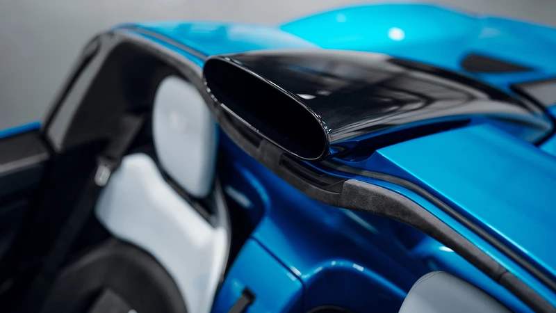 Construido en la misma estructura de fibra de carbono, lo primero que hay que destacar es que no se trata de un cabrio, sino de un Targa ya que se saca solo el panel del techo, conservando todo el “arco” trasero y la toma de aire. La solución permitió conservar la rigidez estructural sumando solo 18 kilos en refuerzos para un peso total de 1.108 kg.