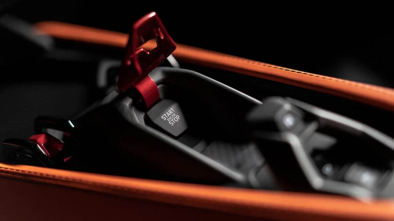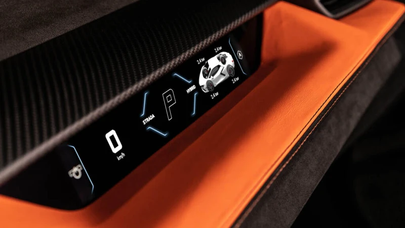 Detalles como la columna de dirección en fibra de carbono, la discreta rejilla que oculta las salidas de aire, las levas detrás del volante y hasta la tradicional palanca de cambios de una caja manual, hablan de un gran nivel de atención al detalle. Incluso, hay tres que se destacan: en las puertas, el contraste de los tiradores amarillos con el tapizado en Alcantara azul; el logo de Eccentrica puesto de manera "excéntrica" en el volante, y los switches frente a la palanca de cambios, que son para hacer la secuencia de encendido del modelo, incluyendo la bomba de combustible, los inyectores y el sistema eléctrico, antes de dar arranque con un botón.