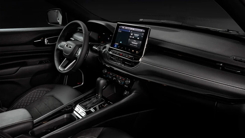 Puertas adentro, el Compass tampoco presenta cambios grandes, pero suma equipamiento en sus variantes más “baratas”, como el sistema de sonido Beats, tablero digital de 10,25” y pantalla multimedia de 10,1” en todas las versiones menos la “Sport” (la más barata), que tiene un instrumental de 7” y una central multimedia de 8,4”. La versión Blackhawk suma un apartado en el tablero que muestra la potencia, las fuerzas G, entre otros.