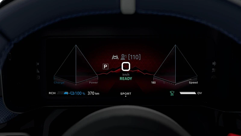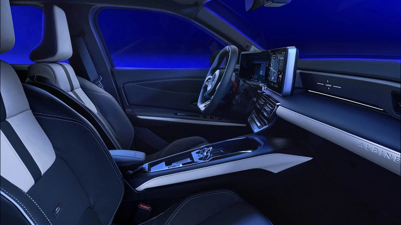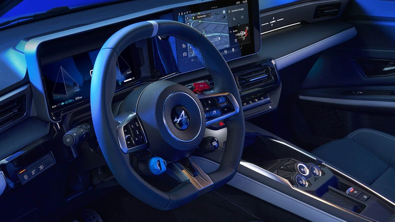 Mientras el Renault 5 llama a la nostalgia con sus terminaciones, el Alpine A290 toma su diseño interior y lo lleva a un mundo que cruza lo futurista con lo deportivo, incluyendo materiales en negro con azul oscuro y gris, más elementos metalizados. Lo más llamativo es el volante recortado, con comandos multifunción pero también con algunos botones inspirados en los monoplazas de F1, incluyendo una perilla para ajustar la regeneración (4 niveles), otra para los cuatro modos de manejo y un botón rojo que entrega toda la potencia disponible para realizar adelantamientos.