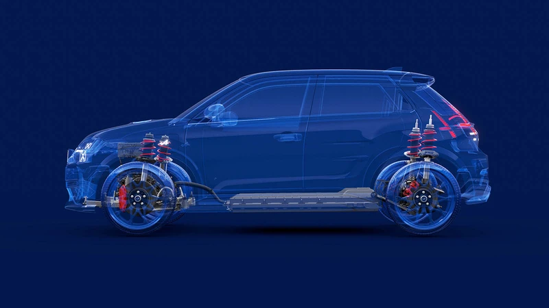 Alpine trabajó bastante sobre la plataforma AmpR Small, se bajó el centro de gravedad y el reparto de pesos se cargó un poco más hacia la parte posterior (aunque sigue siendo más pesado en el frente), mientras que las baterías forman parte de la estructura del auto y generan una mayor rigidez. La suspensión es especifica, con un subchasis de aluminio, topes hidráulicos y un esquema multilink en el eje posterior.