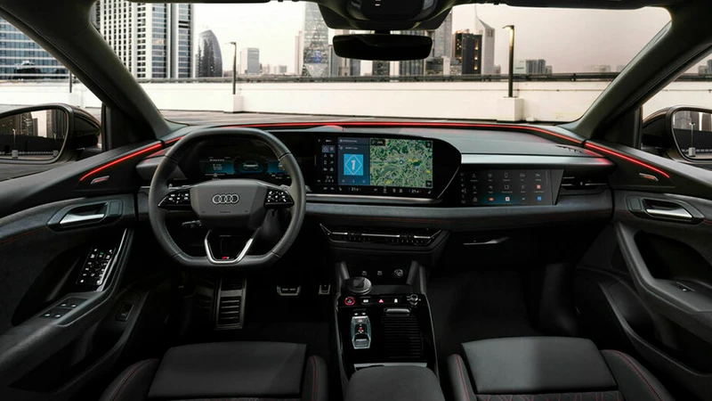 La marca no afirma cuál versión del A5 es la que se exhibe, pero lo único que se confirma es que se trata de la variante sedán (en Europa también se ofrece una rural “Avant), y que en el interior cuenta con tres pantallas: