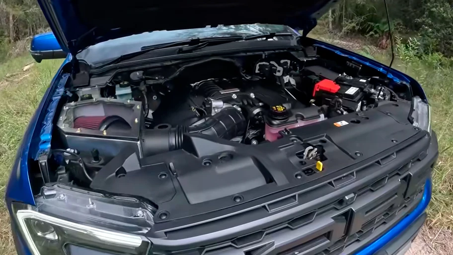 La principal particularidad de esta Ranger Raptor modificada está debajo del capot, ya que como dijimos arriba, el preparador decidió dejar atrás el V6, y adoptar el V8 Coyote de 5.0 L (no se afirma si se tuvieron que hacer muchas modificaciones para que entre en el vano), pero esta variante lleva la "S" por “Supercharged”, por lo que tiene un compresor mecánico Roush, que hace que la potencia crezca a ¡750 CV y 907 Nm!