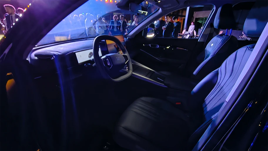 En el interior, el Geely EX5 se destaca por su disposición, con un torpedo simple, de líneas rectas, la consola central elevada y en diagonal, con la "ruedita" selectora y pocos botones, además del volante de dos radios, y otros elementos.
