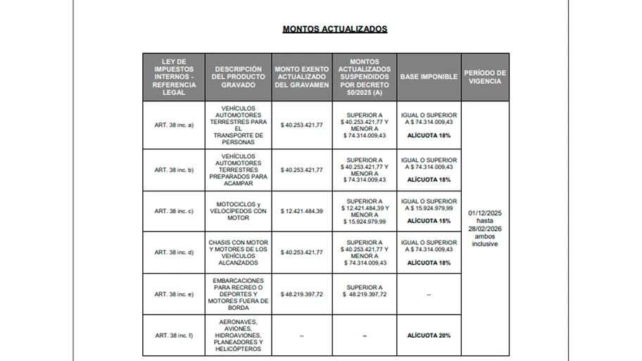 Entre principios de septiembre de 2025 y el 1 de diciembre de 2025, la base imponible del impuesto interno era de $63.166.963,50, y ahora, ese monto creció hasta los $74.314.008,43.