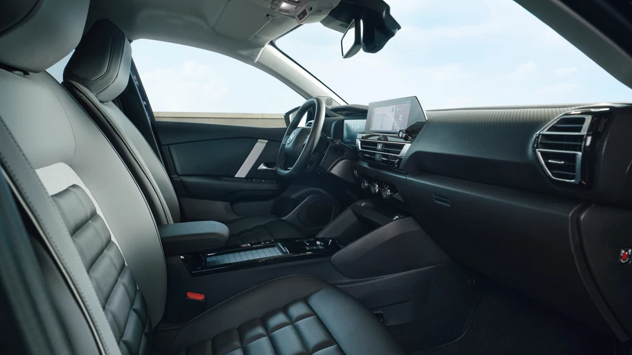 En materia interior, el nuevo Citroën C4 se destaca por sus líneas horizontales, la pantalla flotante, el volante con el nuevo logo de la marca, además de elementos como las salidas de aire centrales en dos niveles, los comandos físicos para el volumen y el climatizador, y el instrumental dentro de una visera.